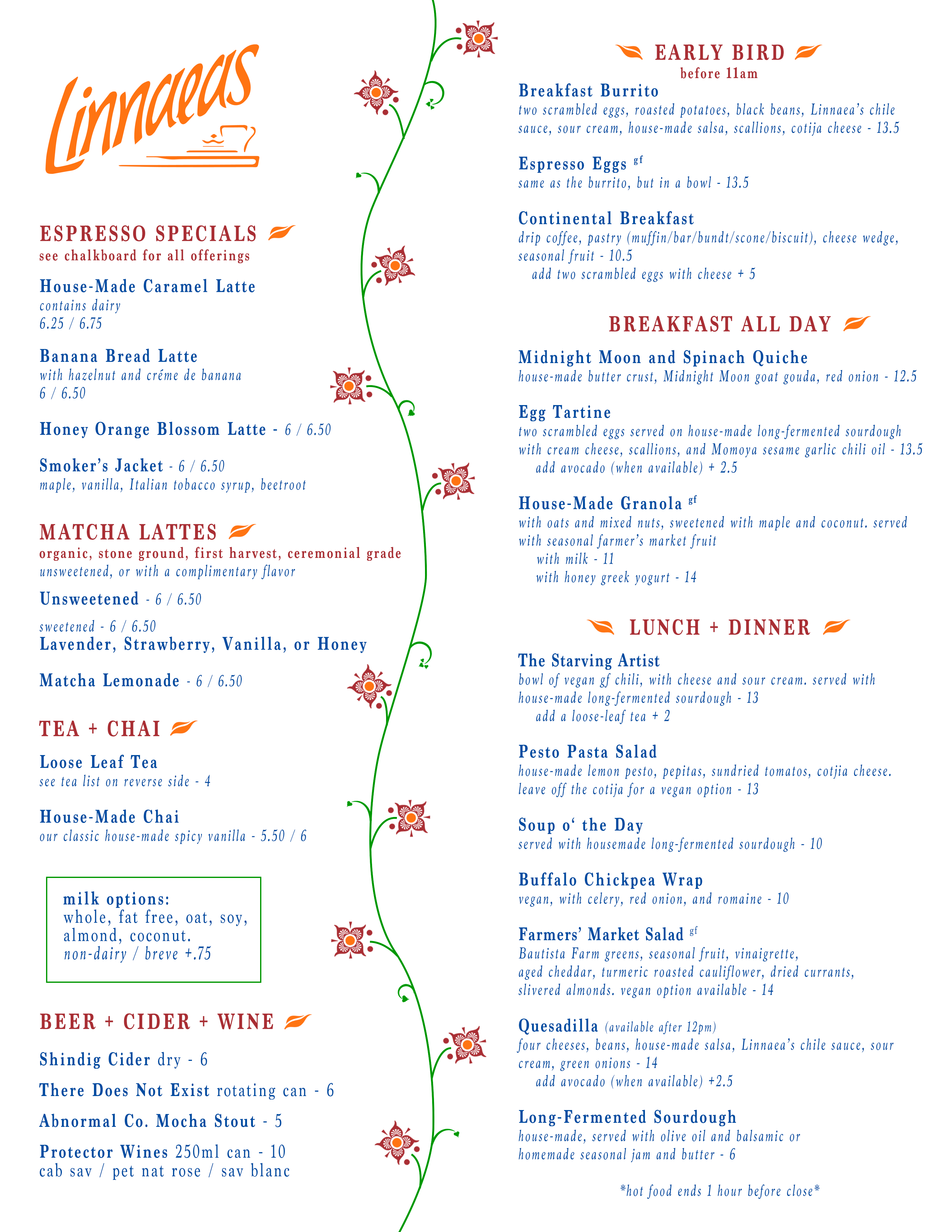 Menu subject to availbility